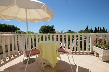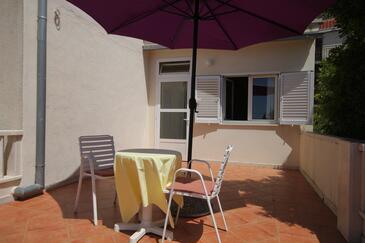 Appartamento può accogliere 4 ospiti. I letti sono disposti nelle camere da letto che sono 2, su 37m2. Gli ospiti hanno a disposizione il proprio terrazzo per godere nelle calde serate estive. Dall'appartamento si gode di una vista sul mare. Si può preparare il cibo utilizzando il barbecue comune.