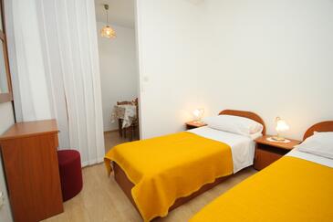 Appartamento può accogliere 4 ospiti. I letti sono disposti nelle camere da letto che sono 2, su 37m2. Gli ospiti hanno a disposizione il proprio terrazzo per godere nelle calde serate estive. Dall'appartamento si gode di una vista sul mare. Si può preparare il cibo utilizzando il barbecue comune.