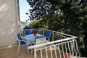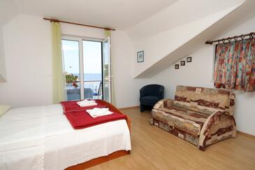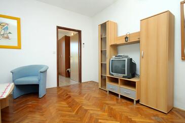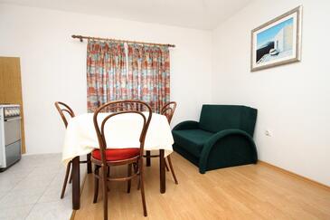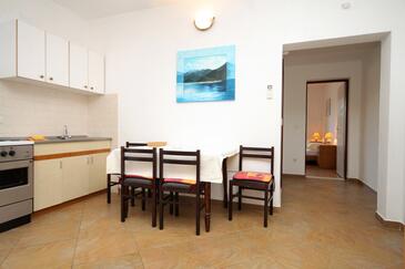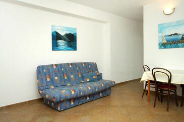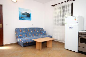 Appartamento può accogliere 4 ospiti. I letti sono disposti nelle camere da letto che sono 1, e nella camera di soggiorno, su 46m2. Gli ospiti hanno a disposizione il proprio terrazzo per godere nelle calde serate estive. Dall'appartamento si gode di una vista sul mare. Si può preparare il cibo utilizzando il barbecue comune. Durante il soggiorno gli ospiti possono utilizzare la piscina comune. Nell'unità di alloggio si possono portare gli animali domestici con un pagamento supplementare.