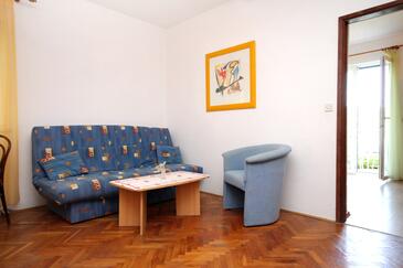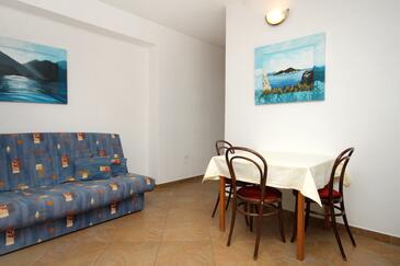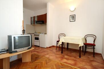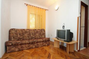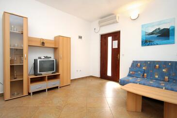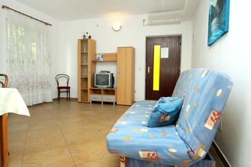 Appartamento può accogliere 4 ospiti. I letti sono disposti nelle camere da letto che sono 1, e nella camera di soggiorno, su 46m2. Gli ospiti hanno a disposizione il proprio terrazzo per godere nelle calde serate estive. Dall'appartamento si gode di una vista sul mare. Si può preparare il cibo utilizzando il barbecue comune. Durante il soggiorno gli ospiti possono utilizzare la piscina comune. Nell'unità di alloggio si possono portare gli animali domestici con un pagamento supplementare.