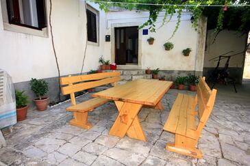 Casa può accogliere 8 ospiti. I letti sono disposti nelle camere da letto che sono 4, su 113m2. Gli ospiti hanno a disposizione il proprio terrazzo per godere nelle calde serate estive. Dalla casa si gode di una vista sul mare. Si può preparare il cibo utilizzando il barbecue comune.