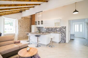 Casa può accogliere 12 ospiti. I letti sono disposti nelle camere da letto che sono 6, su 194m2. Gli ospiti hanno a disposizione il proprio terrazzo per godere nelle calde serate estive. Dalla casa si gode di una vista sul mare. Per il piacere totale e il relax c'è il barbecue privato solo per gli ospiti di quest'alloggio. Le stanze dell'unità d'alloggio non sono connesse in un insieme.