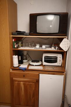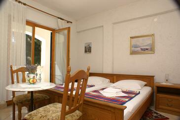 Camera può accogliere 2 ospiti. I letti sono disposti nelle camere da letto che sono 1, su 16m2. Gli ospiti hanno a disposizione il proprio terrazzo per godere nelle calde serate estive. Dalla stanza si gode di una vista sul mare. Nell'unità di alloggio si possono portare gli animali domestici con un pagamento supplementare. L'unità di alloggio prenotata è una camera con bagno proprio senza possibilità d'utilizzo della cucina.