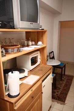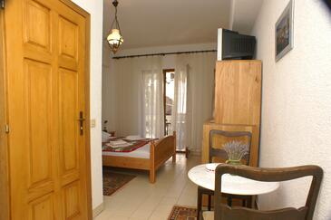 Camera può accogliere 2 ospiti. I letti sono disposti nelle camere da letto che sono 1, su 16m2. Gli ospiti hanno a disposizione il proprio terrazzo per godere nelle calde serate estive. Dalla stanza si gode di una vista sul mare. Nell'unità di alloggio si possono portare gli animali domestici con un pagamento supplementare. L'unità di alloggio prenotata è una camera con bagno proprio senza possibilità d'utilizzo della cucina.