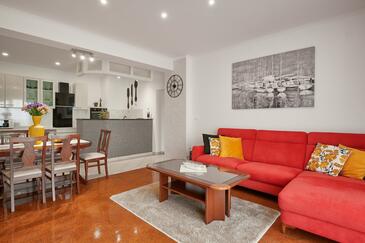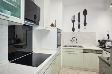 Appartamento può accogliere 8 ospiti. I letti sono disposti nelle camere da letto che sono 3, e nella camera di soggiorno, su 114m2. Gli ospiti hanno a disposizione il proprio balcone per godere delle calde serate estive. Dall'appartamento si gode di una vista sul mare. Per il piacere totale e il relax c'è il barbecue privato solo per gli ospiti di quest'alloggio. Durante il soggiorno gli ospiti si possono rilassare nella piscina privata.