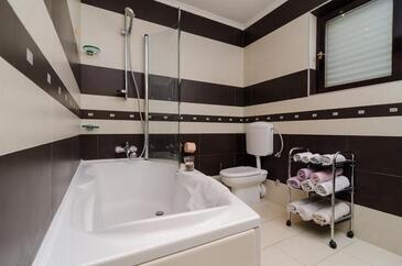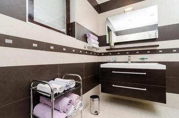 Appartamento può accogliere 10 ospiti. I letti sono disposti nelle camere da letto che sono 5, su 155m2. Gli ospiti hanno a disposizione il proprio terrazzo per godere nelle calde serate estive. Dall'appartamento si gode di una vista sul mare. Per il piacere totale e il relax c'è il barbecue privato solo per gli ospiti di quest'alloggio. Durante il soggiorno gli ospiti possono utilizzare la piscina comune. Le stanze dell'unità d'alloggio non sono connesse in un insieme.