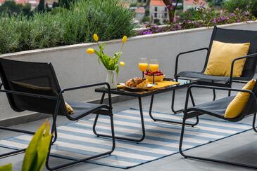 Casa può accogliere 6 ospiti. I letti sono disposti nelle camere da letto che sono 3, su 99m2. Gli ospiti hanno a disposizione il proprio terrazzo per godere nelle calde serate estive. Dalla casa si gode di una vista sul mare. Durante il soggiorno gli ospiti si possono rilassare nella piscina privata.