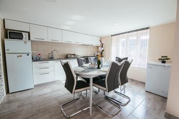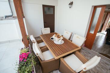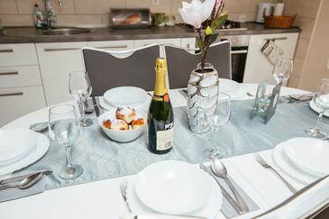 Casa può accogliere 6 ospiti. I letti sono disposti nelle camere da letto che sono 3, su 81m2. Gli ospiti hanno a disposizione il proprio terrazzo per godere nelle calde serate estive. Dalla casa si gode di una vista sul mare. Per il piacere totale e il relax c'è il barbecue privato solo per gli ospiti di quest'alloggio. Nell'unità di alloggio si possono portare gli animali domestici con un pagamento supplementare.