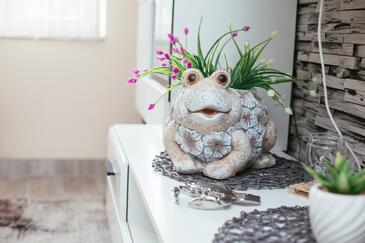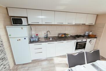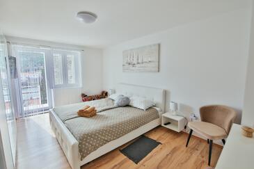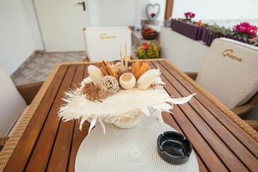 Casa può accogliere 6 ospiti. I letti sono disposti nelle camere da letto che sono 3, su 81m2. Gli ospiti hanno a disposizione il proprio terrazzo per godere nelle calde serate estive. Dalla casa si gode di una vista sul mare. Per il piacere totale e il relax c'è il barbecue privato solo per gli ospiti di quest'alloggio. Nell'unità di alloggio si possono portare gli animali domestici con un pagamento supplementare.