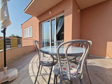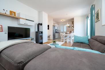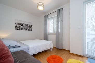 Appartamento può accogliere 4 ospiti. I letti sono disposti nelle camere da letto che sono 2, su 72m2. Gli ospiti hanno a disposizione il proprio terrazzo per godere nelle calde serate estive. Dall'appartamento si gode di una vista sul mare.