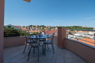 Appartamento può accogliere 4 ospiti. I letti sono disposti nelle camere da letto che sono 2, su 72m2. Gli ospiti hanno a disposizione il proprio terrazzo per godere nelle calde serate estive. Dall'appartamento si gode di una vista sul mare.