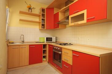 Appartamento può accogliere 4 ospiti. I letti sono disposti nelle camere da letto che sono 2, su 49m2. Gli ospiti hanno a disposizione il proprio terrazzo per godere nelle calde serate estive. Si può preparare il cibo utilizzando il barbecue comune.