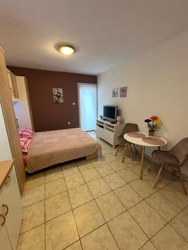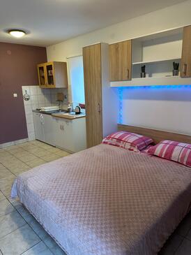 Appartamento può accogliere 5 ospiti. I letti sono disposti nelle camere da letto che sono 2, e nella sala da pranzo, su 38m2. Gli ospiti hanno a disposizione il proprio terrazzo per godere nelle calde serate estive. Dall'appartamento si gode di una vista sul mare. Si può preparare il cibo utilizzando il barbecue comune. Nell'unità di alloggio si possono portare gli animali domestici con un pagamento supplementare.