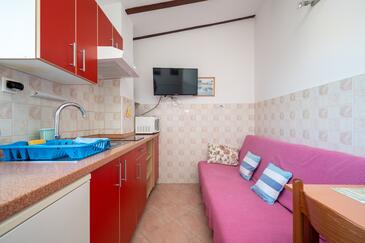Appartamento può accogliere 4 ospiti. I letti sono disposti nelle camere da letto che sono 2, su 33m2. Gli ospiti hanno a disposizione il proprio terrazzo per godere nelle calde serate estive. Dall'appartamento si gode di una vista sul mare. Per il piacere totale e il relax c'è il barbecue privato solo per gli ospiti di quest'alloggio. Nell'unità di alloggio si possono portare gli animali domestici con un pagamento supplementare.