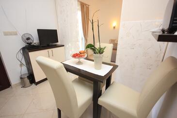 Appartamento può accogliere 4 ospiti. I letti sono disposti nelle camere da letto che sono 2, su 46m2. Gli ospiti hanno a disposizione il proprio terrazzo per godere nelle calde serate estive. Nell'unità di alloggio si possono portare gli animali domestici senza alcun pagamento supplementare. Altri clienti o proprietari passano per terrazzo dell'unità d'alloggio prenotata.
