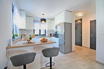 Casa può accogliere 8 ospiti. I letti sono disposti nelle camere da letto che sono 3, e nella camera di soggiorno, su 112m2. Gli ospiti hanno a disposizione il proprio terrazzo per godere nelle calde serate estive. Per il piacere totale e il relax c'è il barbecue privato solo per gli ospiti di quest'alloggio. Durante il soggiorno gli ospiti si possono rilassare nella piscina privata. Arrivati nell'unità d'alloggio i clienti devono pagare un deposito (il prezzo è indicato sul sito).