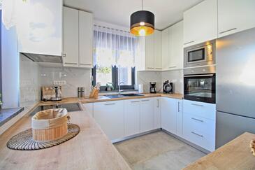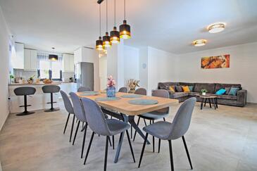 Casa può accogliere 8 ospiti. I letti sono disposti nelle camere da letto che sono 3, e nella camera di soggiorno, su 112m2. Gli ospiti hanno a disposizione il proprio terrazzo per godere nelle calde serate estive. Per il piacere totale e il relax c'è il barbecue privato solo per gli ospiti di quest'alloggio. Durante il soggiorno gli ospiti si possono rilassare nella piscina privata. Arrivati nell'unità d'alloggio i clienti devono pagare un deposito (il prezzo è indicato sul sito).