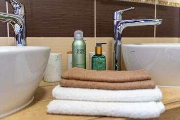 Casa può accogliere 9 ospiti. I letti sono disposti nelle camere da letto che sono 4, e nella camera di soggiorno, su 189m2. Gli ospiti hanno a disposizione il proprio terrazzo per godere nelle calde serate estive. Per il piacere totale e il relax c'è il barbecue privato solo per gli ospiti di quest'alloggio. Durante il soggiorno gli ospiti si possono rilassare nella piscina privata.