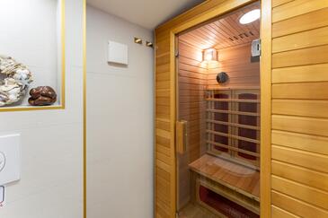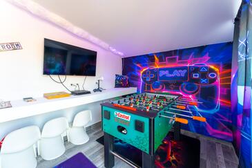Casa può accogliere 9 ospiti. I letti sono disposti nelle camere da letto che sono 4, e nella camera di soggiorno, su 189m2. Gli ospiti hanno a disposizione il proprio terrazzo per godere nelle calde serate estive. Per il piacere totale e il relax c'è il barbecue privato solo per gli ospiti di quest'alloggio. Durante il soggiorno gli ospiti si possono rilassare nella piscina privata.