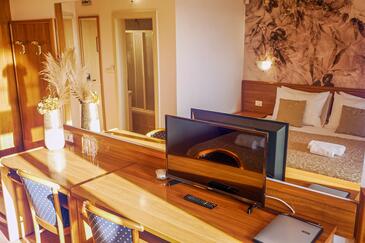 Camera può accogliere 2 ospiti. I letti sono disposti nelle camere da letto che sono 1, su 25m2. Gli ospiti hanno a disposizione il proprio balcone per godere delle calde serate estive. Durante il soggiorno gli ospiti possono utilizzare la piscina comune. Nell'unità di alloggio si possono portare gli animali domestici con un pagamento supplementare. L'unità di alloggio prenotata è una camera con bagno proprio senza possibilità d'utilizzo della cucina.