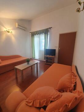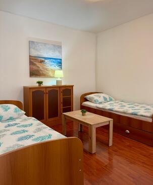 Appartamento può accogliere 4 ospiti. I letti sono disposti nelle camere da letto che sono 2, su 42m2. Gli ospiti hanno a disposizione il proprio terrazzo per godere nelle calde serate estive. Si può preparare il cibo utilizzando il barbecue comune. Nell'unità di alloggio si possono portare gli animali domestici con un pagamento supplementare. Altri clienti o proprietari passano per terrazzo dell'unità d'alloggio prenotata.