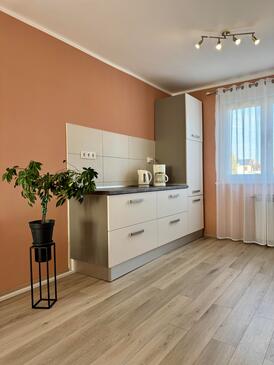 Appartamento può accogliere 4 ospiti. I letti sono disposti nelle camere da letto che sono 2, su 42m2. Gli ospiti hanno a disposizione il proprio terrazzo per godere nelle calde serate estive. Si può preparare il cibo utilizzando il barbecue comune. Nell'unità di alloggio si possono portare gli animali domestici con un pagamento supplementare. Altri clienti o proprietari passano per terrazzo dell'unità d'alloggio prenotata.