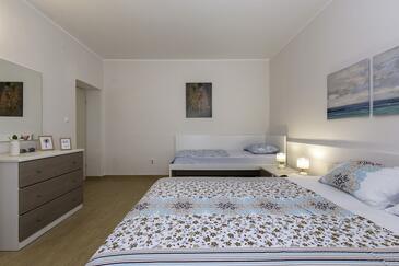 Appartamento può accogliere 8 ospiti. I letti sono disposti nelle camere da letto che sono 3, su 95m2. Gli ospiti hanno a disposizione il proprio terrazzo per godere nelle calde serate estive. Per il piacere totale e il relax c'è il barbecue privato solo per gli ospiti di quest'alloggio.