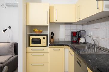 Appartamento può accogliere 4 ospiti. I letti sono disposti nelle camere da letto che sono 2, su 42m2. Gli ospiti hanno a disposizione il proprio terrazzo per godere nelle calde serate estive. Per il piacere totale e il relax c'è il barbecue privato solo per gli ospiti di quest'alloggio.