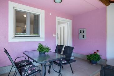 Appartamento può accogliere 4 ospiti. I letti sono disposti nelle camere da letto che sono 2, su 42m2. Gli ospiti hanno a disposizione il proprio terrazzo per godere nelle calde serate estive. Per il piacere totale e il relax c'è il barbecue privato solo per gli ospiti di quest'alloggio.