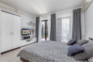 Appartamento può accogliere 4 ospiti. I letti sono disposti nelle camere da letto che sono 2, su 44m2. Gli ospiti hanno a disposizione il proprio terrazzo per godere nelle calde serate estive. Si può preparare il cibo utilizzando il barbecue comune.
