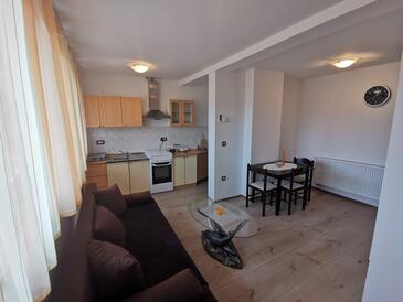 Appartamento può accogliere 6 ospiti. I letti sono disposti nelle camere da letto che sono 2, e nella camera di soggiorno, su 52m2. Gli ospiti hanno a disposizione il proprio terrazzo per godere nelle calde serate estive.