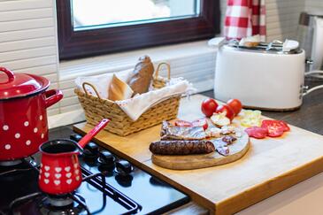 Appartamento può accogliere 6 ospiti. I letti sono disposti nelle camere da letto che sono 2, su 74m2. Gli ospiti hanno a disposizione il proprio terrazzo per godere nelle calde serate estive.