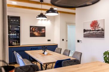 Casa può accogliere 7 ospiti. I letti sono disposti nelle camere da letto che sono 3, e nella camera di soggiorno, su 191m2. Gli ospiti hanno a disposizione il proprio terrazzo per godere nelle calde serate estive. Per il piacere totale e il relax c'è il barbecue privato solo per gli ospiti di quest'alloggio. Nell'unità di alloggio si possono portare gli animali domestici senza alcun pagamento supplementare.