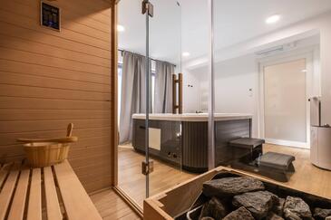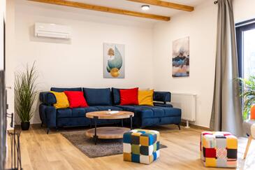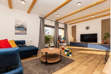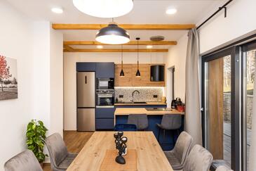 Casa può accogliere 7 ospiti. I letti sono disposti nelle camere da letto che sono 3, e nella camera di soggiorno, su 191m2. Gli ospiti hanno a disposizione il proprio terrazzo per godere nelle calde serate estive. Per il piacere totale e il relax c'è il barbecue privato solo per gli ospiti di quest'alloggio. Nell'unità di alloggio si possono portare gli animali domestici senza alcun pagamento supplementare.