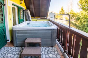 Casa può accogliere 8 ospiti. I letti sono disposti nelle camere da letto che sono 3, e nella camera di soggiorno, su 143m2. Gli ospiti hanno a disposizione il proprio terrazzo per godere nelle calde serate estive. Per il piacere totale e il relax c'è il barbecue privato solo per gli ospiti di quest'alloggio. Nell'unità di alloggio si possono portare gli animali domestici senza alcun pagamento supplementare.