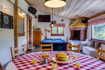 Casa può accogliere 7 ospiti. I letti sono disposti nelle camere da letto che sono 3, e nella camera di soggiorno, su 145m2. Gli ospiti hanno a disposizione il proprio terrazzo per godere nelle calde serate estive. Per il piacere totale e il relax c'è il barbecue privato solo per gli ospiti di quest'alloggio. Durante il soggiorno gli ospiti si possono rilassare nella piscina privata. Nell'unità di alloggio si possono portare gli animali domestici con un pagamento supplementare.