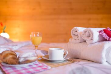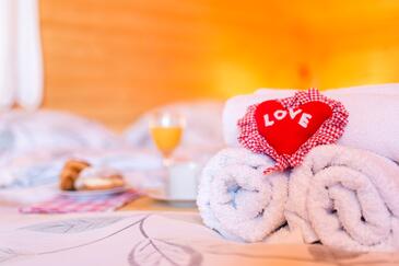 Casa può accogliere 8 ospiti. I letti sono disposti nelle camere da letto che sono 4, su 97m2. Gli ospiti hanno a disposizione il proprio terrazzo per godere nelle calde serate estive. Per il piacere totale e il relax c'è il barbecue privato solo per gli ospiti di quest'alloggio. Arrivati nell'unità d'alloggio i clienti devono pagare un deposito (il prezzo è indicato sul sito).