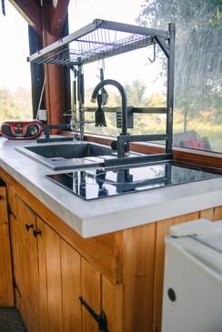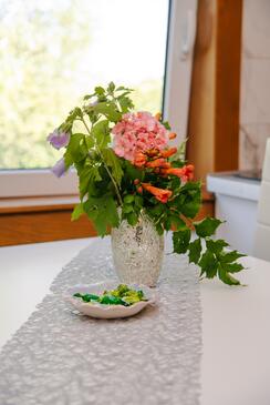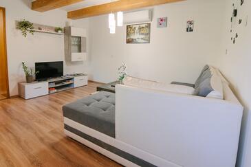 Casa può accogliere 4 ospiti. I letti sono disposti nelle camere da letto che sono 2, e nella camera di soggiorno, su 48m2. Gli ospiti hanno a disposizione il proprio terrazzo per godere nelle calde serate estive. Per il piacere totale e il relax c'è il barbecue privato solo per gli ospiti di quest'alloggio. Durante il soggiorno gli ospiti si possono rilassare nella piscina privata. Nell'unità di alloggio si possono portare gli animali domestici con un pagamento supplementare.