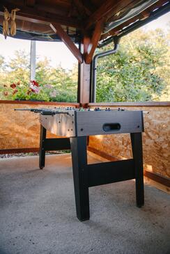 Casa può accogliere 4 ospiti. I letti sono disposti nelle camere da letto che sono 2, e nella camera di soggiorno, su 48m2. Gli ospiti hanno a disposizione il proprio terrazzo per godere nelle calde serate estive. Per il piacere totale e il relax c'è il barbecue privato solo per gli ospiti di quest'alloggio. Durante il soggiorno gli ospiti si possono rilassare nella piscina privata. Nell'unità di alloggio si possono portare gli animali domestici con un pagamento supplementare.