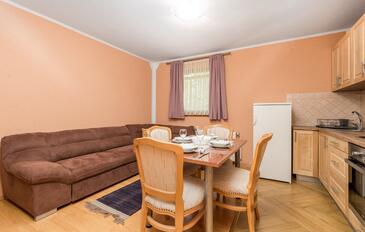 Appartamento può accogliere 6 ospiti. I letti sono disposti nelle camere da letto che sono 2, e nella camera di soggiorno, su 46m2. Gli ospiti hanno a disposizione il proprio terrazzo per godere nelle calde serate estive. Si può preparare il cibo utilizzando il barbecue comune.