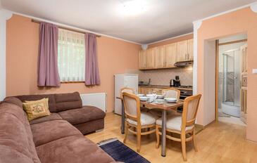 Appartamento può accogliere 6 ospiti. I letti sono disposti nelle camere da letto che sono 2, e nella camera di soggiorno, su 46m2. Gli ospiti hanno a disposizione il proprio terrazzo per godere nelle calde serate estive. Si può preparare il cibo utilizzando il barbecue comune.
