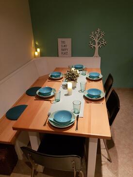 Casa può accogliere 8 ospiti. I letti sono disposti nelle camere da letto che sono 3, e nella camera di soggiorno, su 98m2. Gli ospiti hanno a disposizione il proprio balcone per godere delle calde serate estive. Per il piacere totale e il relax c'è il barbecue privato solo per gli ospiti di quest'alloggio. Nell'unità di alloggio si possono portare gli animali domestici senza alcun pagamento supplementare.