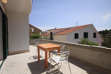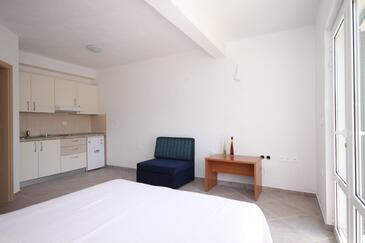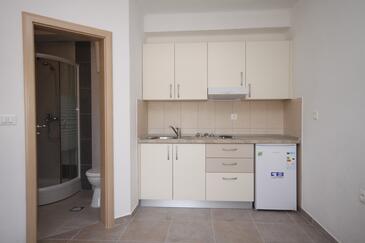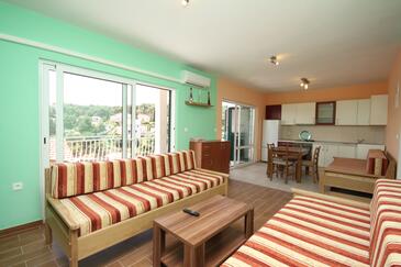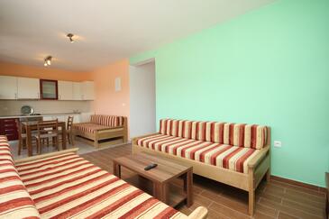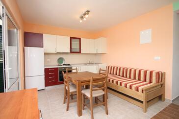 Appartamento può accogliere 6 ospiti. I letti sono disposti nelle camere da letto che sono 2, e nella camera di soggiorno, su 59m2. Gli ospiti hanno a disposizione il proprio terrazzo per godere nelle calde serate estive. Dall'appartamento si gode di una vista sul mare. Si può preparare il cibo utilizzando il barbecue comune. Nell'unità di alloggio si possono portare gli animali domestici con un pagamento supplementare.