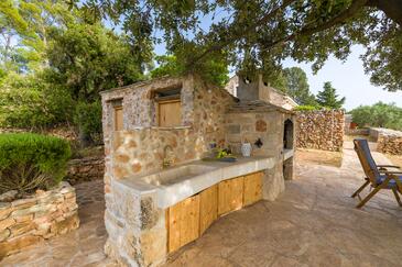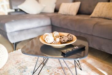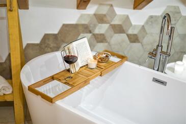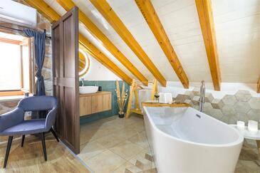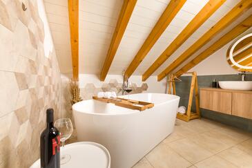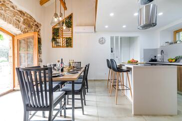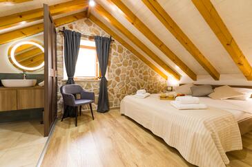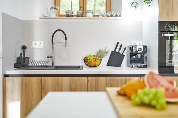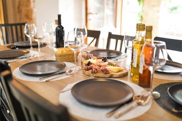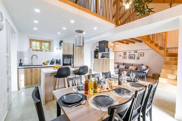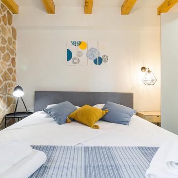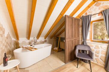 Casa può accogliere 8 ospiti. I letti sono disposti nelle camere da letto che sono 4, su 107m2. Gli ospiti hanno a disposizione il proprio terrazzo per godere nelle calde serate estive. Dalla casa si gode di una vista sul mare. Per il piacere totale e il relax c'è il barbecue privato solo per gli ospiti di quest'alloggio. Nell'unità di alloggio si possono portare gli animali domestici senza alcun pagamento supplementare. Le stanze dell'unità d'alloggio non sono connesse in un insieme.