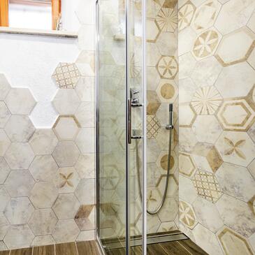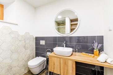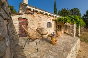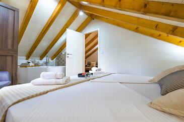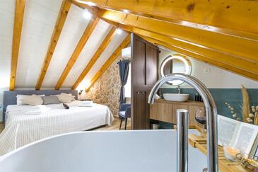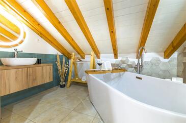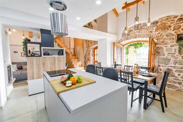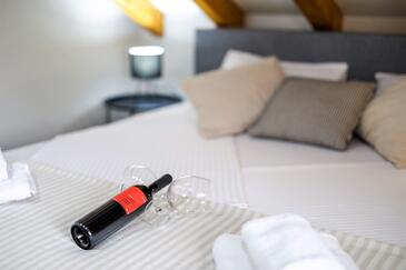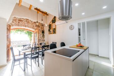 Casa può accogliere 8 ospiti. I letti sono disposti nelle camere da letto che sono 4, su 107m2. Gli ospiti hanno a disposizione il proprio terrazzo per godere nelle calde serate estive. Dalla casa si gode di una vista sul mare. Per il piacere totale e il relax c'è il barbecue privato solo per gli ospiti di quest'alloggio. Nell'unità di alloggio si possono portare gli animali domestici senza alcun pagamento supplementare. Le stanze dell'unità d'alloggio non sono connesse in un insieme.