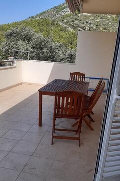 Appartamento può accogliere 4 ospiti. I letti sono disposti nelle camere da letto che sono 2, su 40m2. Gli ospiti hanno a disposizione il proprio terrazzo per godere nelle calde serate estive. Dall'appartamento si gode di una vista sul mare. Si può preparare il cibo utilizzando il barbecue comune.