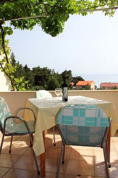 Appartamento può accogliere 6 ospiti. I letti sono disposti nelle camere da letto che sono 2, e nella camera di soggiorno, su 52m2. Gli ospiti hanno a disposizione il proprio terrazzo per godere nelle calde serate estive. Dall'appartamento si gode di una vista sul mare. Si può preparare il cibo utilizzando il barbecue comune. Nell'unità di alloggio si possono portare gli animali domestici con un pagamento supplementare.