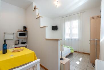 Appartamento può accogliere 4 ospiti. I letti sono disposti nelle camere da letto che sono 2, su 41m2. Gli ospiti hanno a disposizione il proprio terrazzo per godere nelle calde serate estive. Si può preparare il cibo utilizzando il barbecue comune. Nell'unità di alloggio si possono portare gli animali domestici con un pagamento supplementare. Arrivati nell'unità d'alloggio i clienti devono pagare un deposito (il prezzo è indicato sul sito).