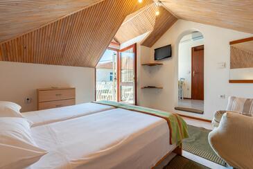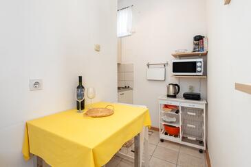 Appartamento può accogliere 4 ospiti. I letti sono disposti nelle camere da letto che sono 2, su 41m2. Gli ospiti hanno a disposizione il proprio terrazzo per godere nelle calde serate estive. Si può preparare il cibo utilizzando il barbecue comune. Nell'unità di alloggio si possono portare gli animali domestici con un pagamento supplementare. Arrivati nell'unità d'alloggio i clienti devono pagare un deposito (il prezzo è indicato sul sito).