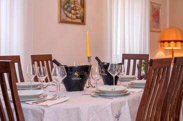 Appartamento può accogliere 7 ospiti. I letti sono disposti nelle camere da letto che sono 3, su 92m2. Gli ospiti hanno a disposizione il proprio balcone per godere delle calde serate estive. Dall'appartamento si gode di una vista sul mare. Si può preparare il cibo utilizzando il barbecue comune. Durante il soggiorno gli ospiti possono utilizzare la piscina comune.